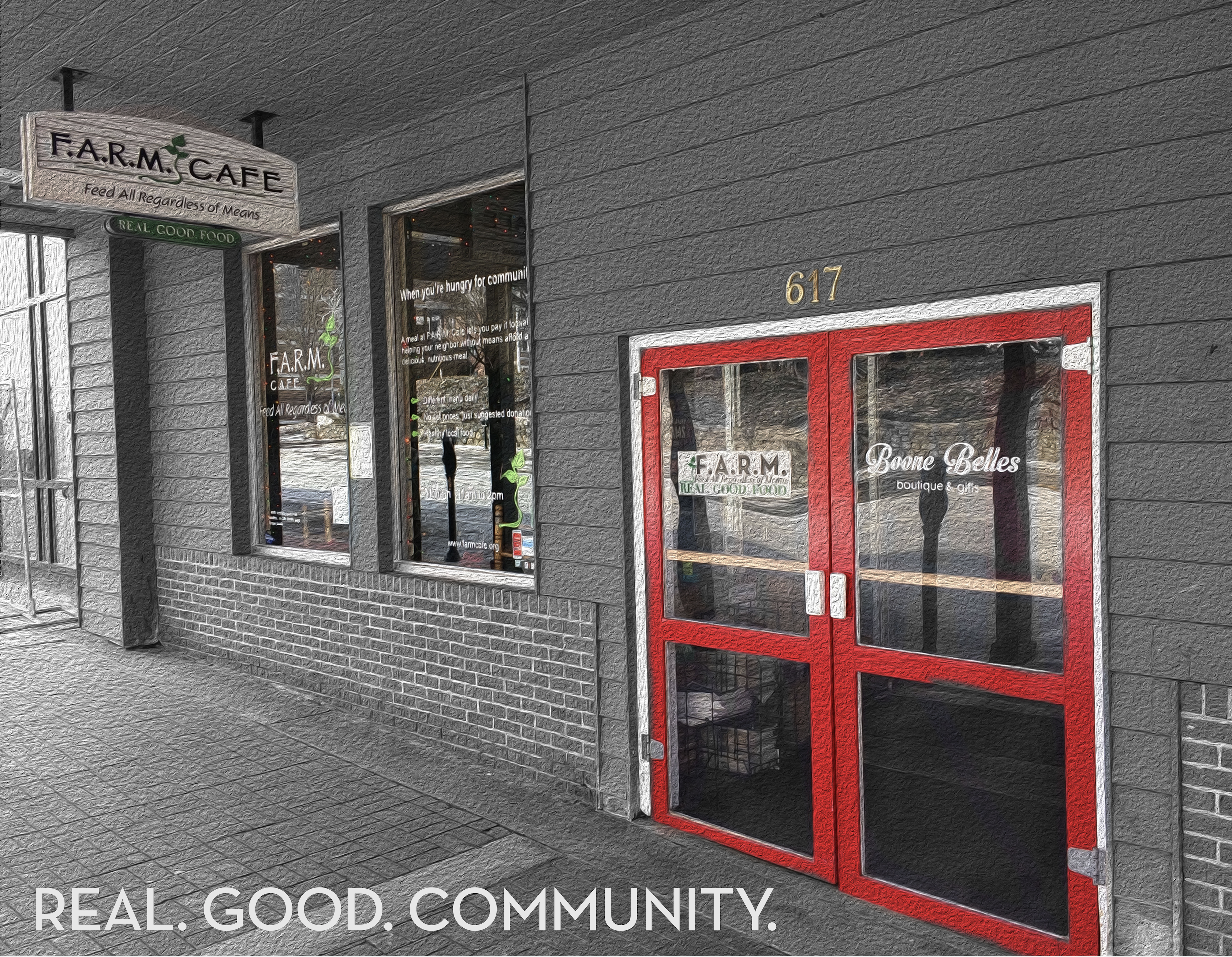 F.A.R.M. Cafe, Inc. is a 501(c)(3) non-profit, pay-what-you-can community cafe that operates primarily with volunteers. We prepare high-quality, delicious meals produced from local sources whenever possible and served in a restaurant where everybody eats, regardless of means.